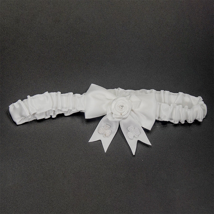 This adorable headband is perfect to complete a baby's Christening outfit. It is adorned with a bow and shamrock appliques. Polyester