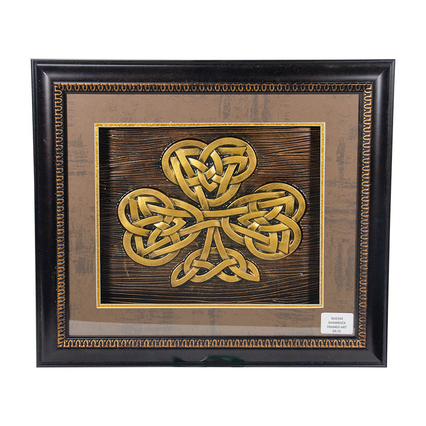 Beautiful rich looking framed Celtic art. A shamrock done out of Celtic knots. 16.5" x 14.5". Resin.