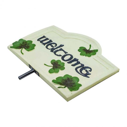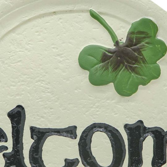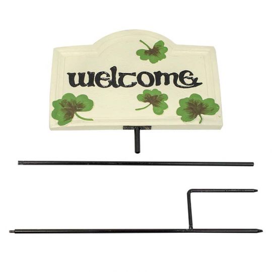 This Shamrock Garden Stake makes a pleasant greeting to those visiting your home or business. Cast in resin and treated to look like aged tin. The word �Welcome� is painted in black Celtic lettering, with painted green shamrock embellishments. Stands 4� a