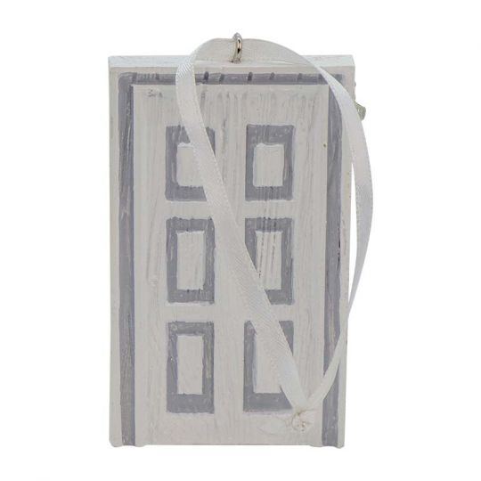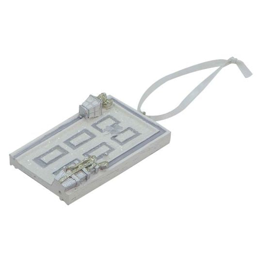 Celtic Door Christmas ornament with Presents, shamrocks, and lamp post. Comes with Lace loop pre-installed for easy hanging.